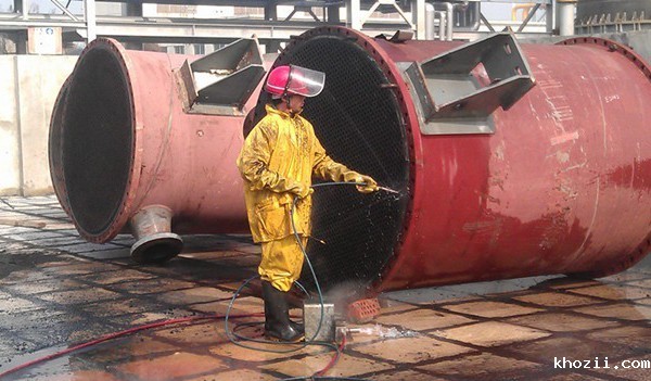 利用高压流水对设备进行清洗。需要高压清洗设备。